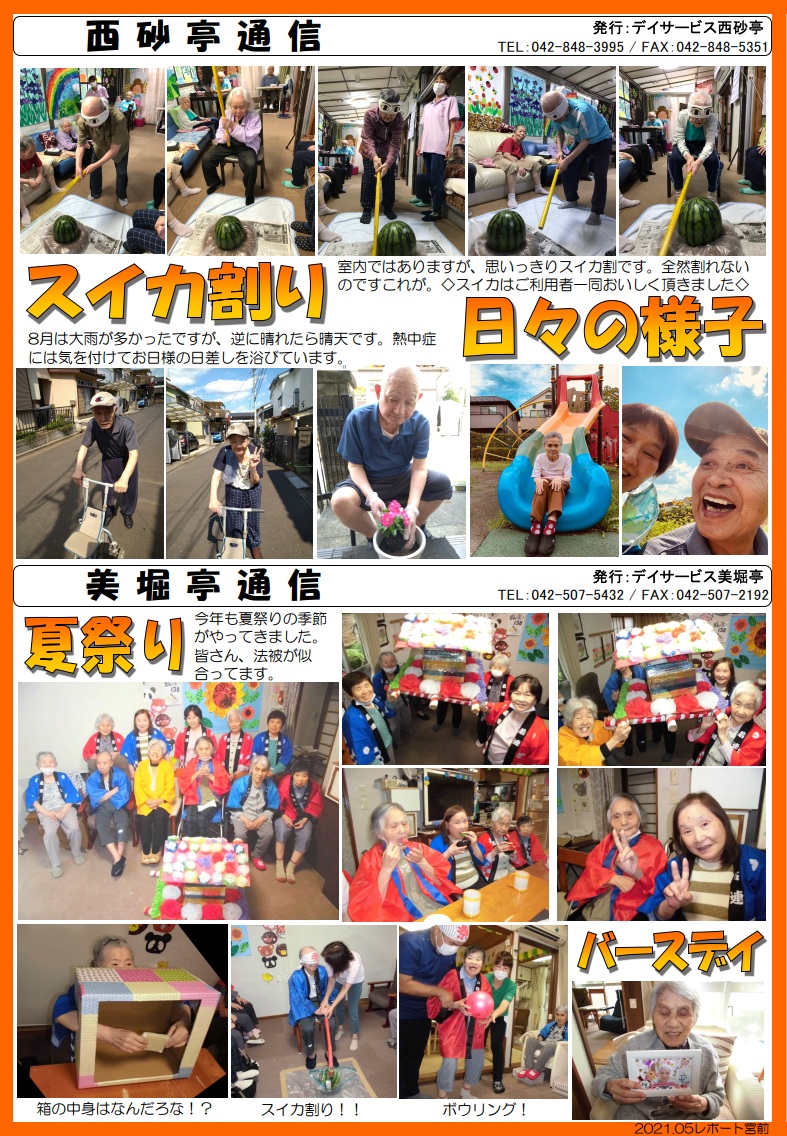 スイカ割りでは、命中した瞬間がまるで合図のようで、周りの空気がふっと明るくなります。大雨の日が多かった月でしたが、晴れた日は一転して強い日差しが戻り、熱中症に気をつけながら短い散歩にも出かけました。外に出ると、風の向きや空の色が日ごとに変わり、季節の移ろいを肌で感じられます。