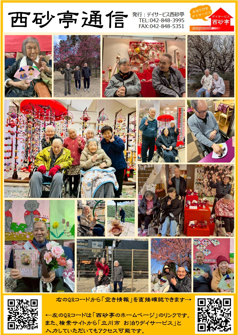 大きなイベントがある月も、静かに過ぎていく月もありますが、こうして一枚一枚の写真を眺めると、その日の空気や温度まで思い出せるような気がします。西砂亭で過ごす日々が、利用者様にとって心地よい時間であり続けるよう、これからも季節の変化を楽しみながら過ごしていきたいものです。